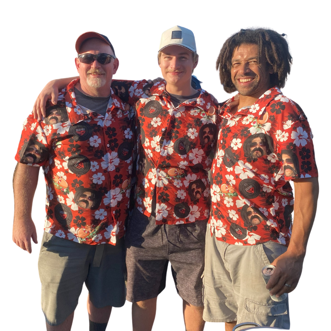 The Chicago Griffins are proud to announce the introduction of the Morgan Nichols Fashion Collection! First modeled at the 50th Anniversary match celebration, these beautiful Hawaiian-style shirts are emblazoned with a photo of Brendan Brown in Halloween costume and a 50th Anniversary patch.